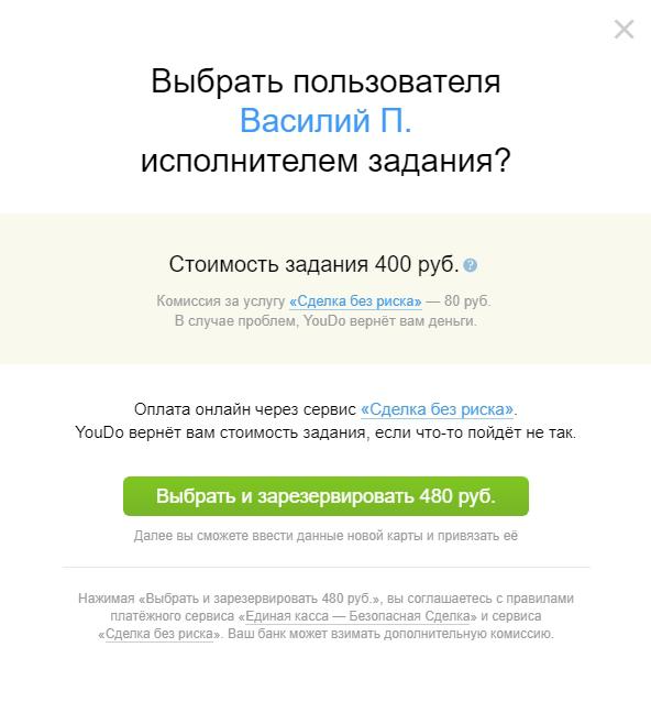 После выбора исполнителя стоимость задания будет зарезервирована на счете в платежной системе нашего партнера.